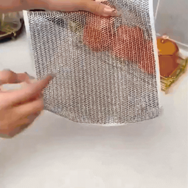 Îndepărtează cu ușurință grăsimea, murdăria și arsurile. Nu lasă zgârieturi, își menține forma și nu se deformează ca sârma obișnuită. O soluție practică care ocupă puțin spațiu și face spălatul vaselor o plăcere.